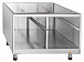 Открытый с лицевой стороны модуль. Направляющие для двух гастроемкостей размером GN 1/1. Полностью из нержавеющей стали.Регулируемые по высоте ножки.