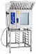 Зонт ЗВВ-800 предназначен для установки на пароконвектоматы типа ПКА-6-1/1 и ПКА-10-1/1 и состоит из трех основных частей: корпуса, съемного лабиринтного фильтра и вентилятора. Подсоединяется к пароконвектомату с помощью кабеля питания (1,8 м с заземлением) и фиксируется с помощью уголков и болтов М5 к задней стенке пароконвектомата.Принцип действия: разогретый воздух, насыщенный парами масла, жира и воды, всасывается вентилятором и проходит через лабиринтные фильтры. Затем пары масла, жира и воды, содержащиеся в воздухе, конденсируются на фильтре благодаря температурному перепаду и стекают в герметичную ванну - жиросборник - расположенную в корпусе зонта. Ванна зонта имеет сливную трубку с резьбой G 1/2'', к которой необходимо подсоединить шаровой кран для слива жидкости.