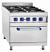 Плита имеет три горелки по 5,5 кВт и одну мощную горелку - 7,5 кВт. Плита снабжена системой поджига и устройством "газ-контроль". Внизу - жарочный шкаф с одним противнем GN 2/1 и одной решеткой того же размера, изготовленные из нержавеющей стали. Рабочий диапазон температуры духовки 120-3200 С. Плита имеет регулируемые по высоте ножки. В комплекте поставляются дополнительные съемные форсунки под "сжиженный газ".