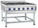 Газовая плита 6-горелочная на подставке ПГК-69П. Предназначена для приготовления первых, вторых и третьих блюд в наплитной посуде.Плита имеет четыре горелки по 5,5 кВт и две мощные горелки "двойная корона" по 7,5 кВт. Плита снабжена устройством "газ-контроль". Внизу - открытая разборная поставка. Плита имеетрегулируемые по высоте ножки. В комплекте поставляются дополнительные съемные форсунки под "сжиженный газ".